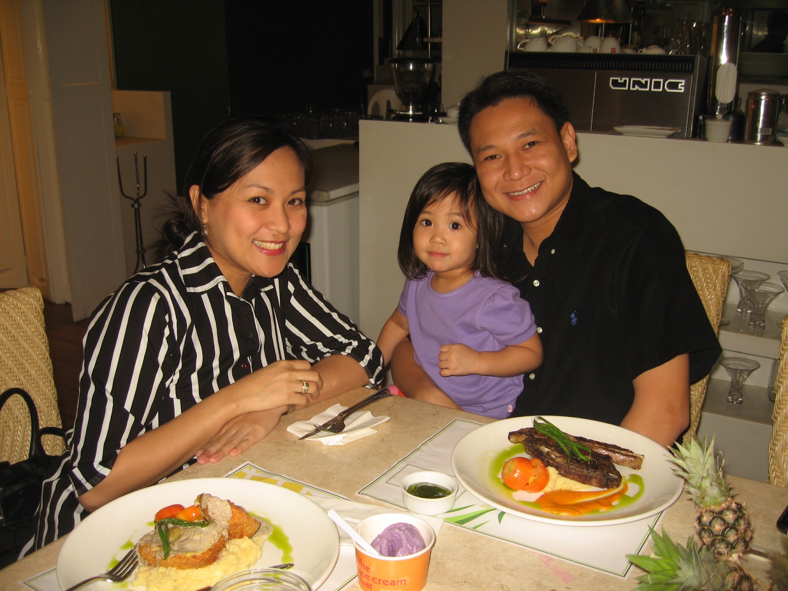 Chicken for me, lamb for honey and purple ice cream for Mia. Being together makes all these yummier! |