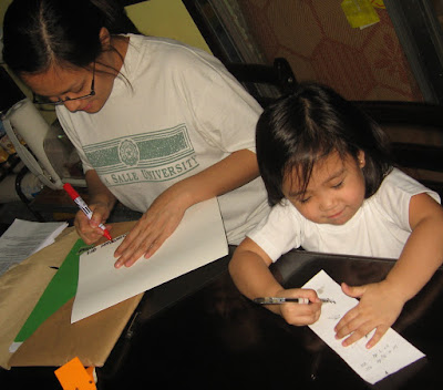 | Mia grabbed my pen and started to scribble on the nearest paper she can reach. She loves pens, coloring materials and paper; taking after me. |