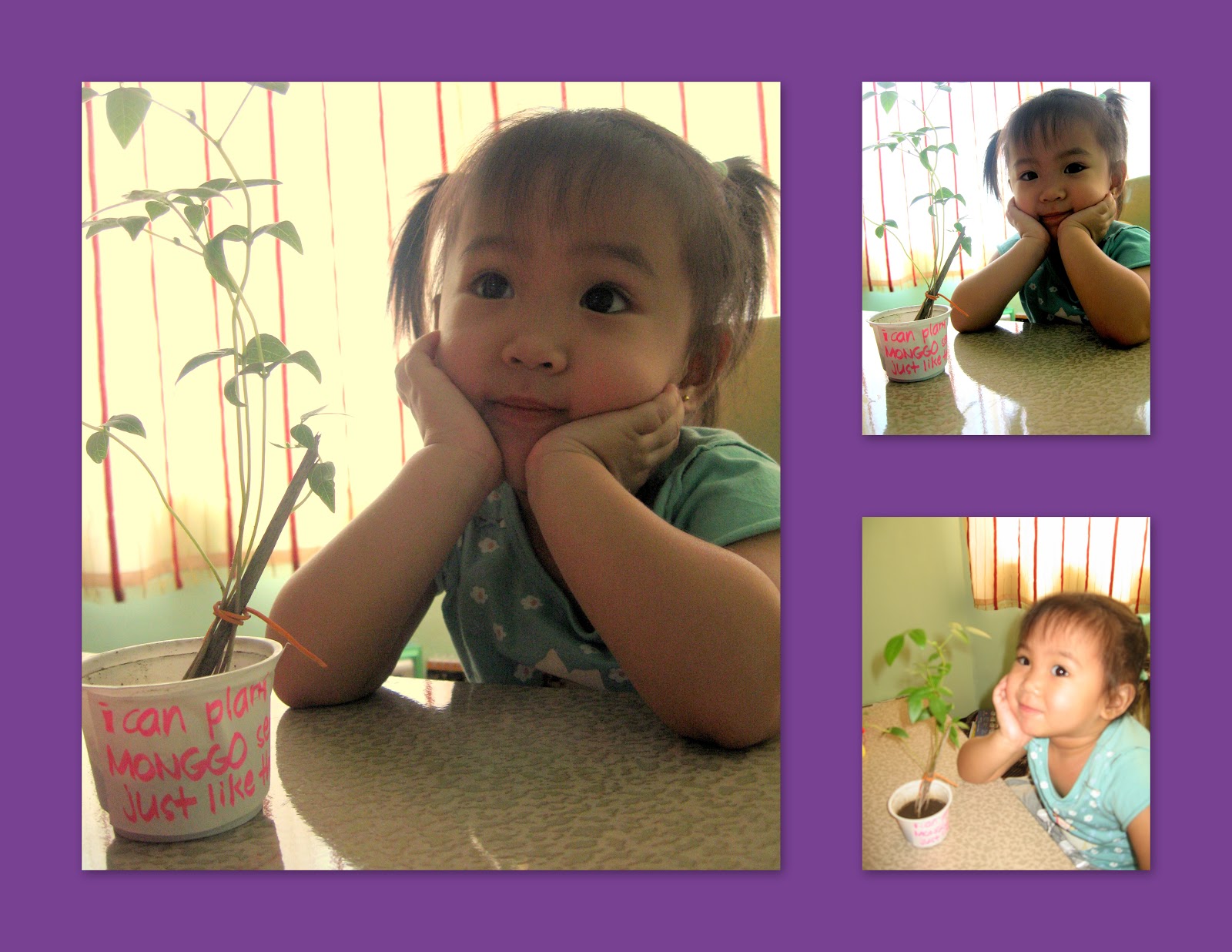 The school she loves gave her her 1st victory. Mia won the Green Thumb Photo Contest with 86 likes (in Facebook). We planted monggo seeds in school while singing. This was the same plant that had to appear in the picture.