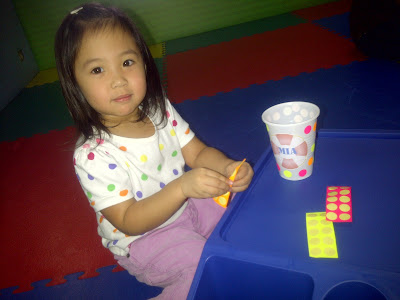 The cups the kids decorated earlier were filled with cold juice drinks to refresh them from all the singing and dancing. Mia loves her cup. I am actually having difficulty disposing of it. She keeps on looking for it; “Where’s my juice cup?”