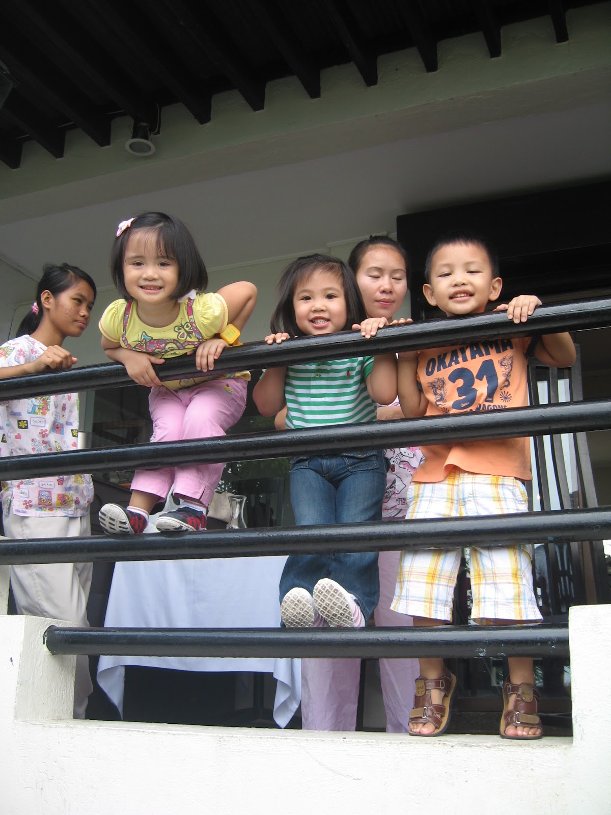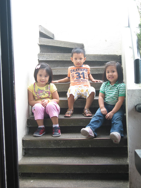 | Mia called on Ira and Migs to sit with her she loves sitting on these steps, wala kasing hagdanan sa bahay namin |