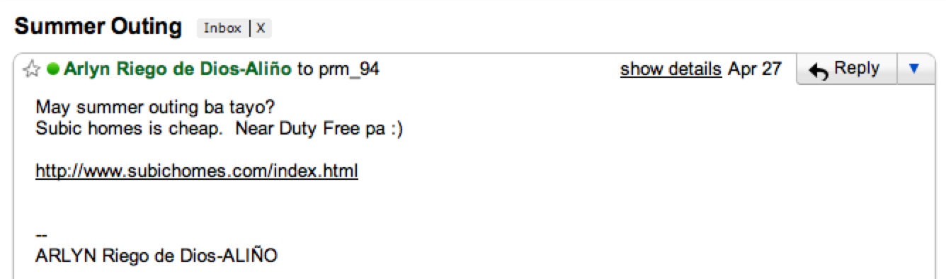 Just before summer comes to an end, I sent an email: