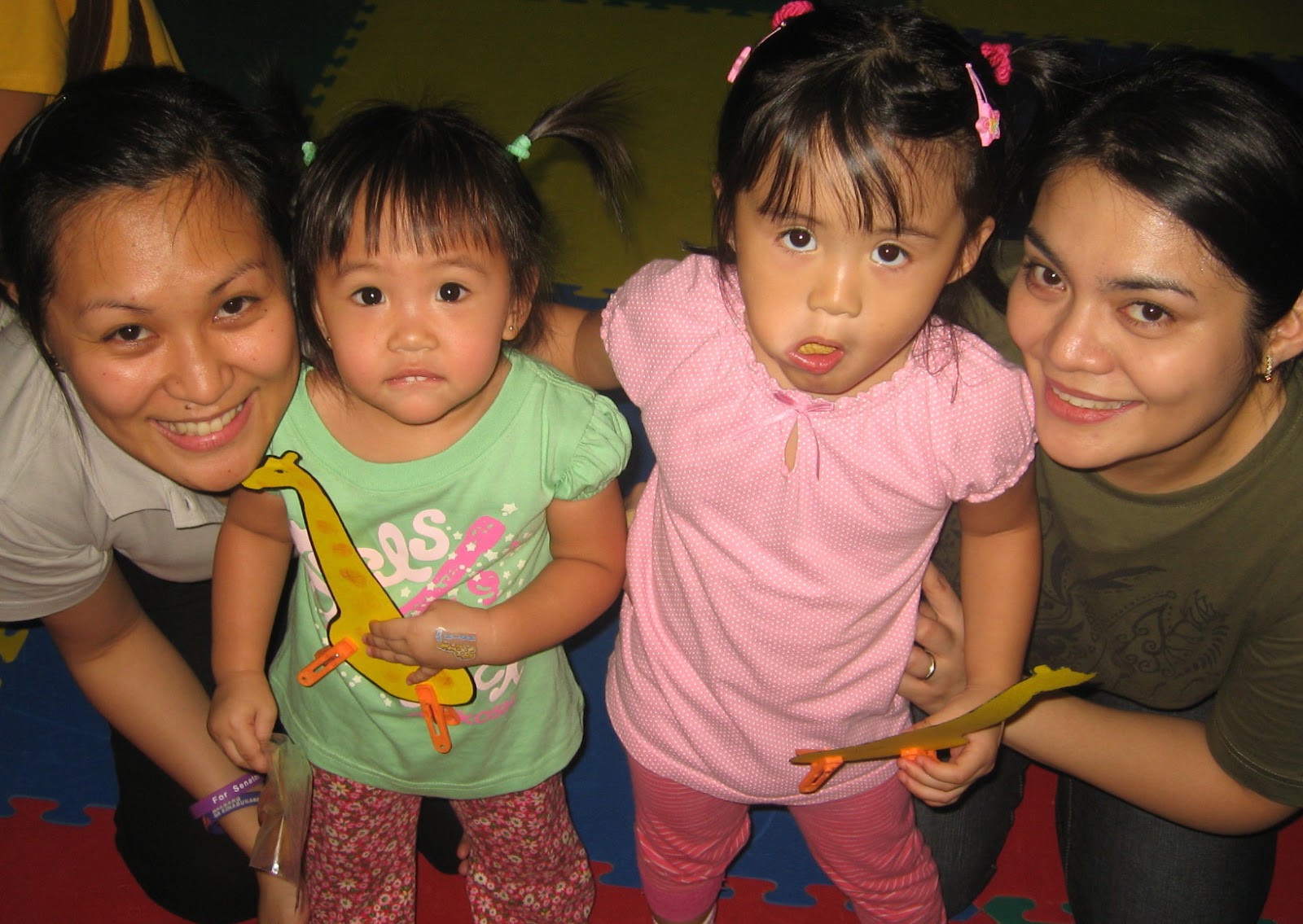 Each class always ends with a goodbye song, just as it starts with a hello song. Then, the kids fall in line to get their stickers from Teacher Marah – their reward for participating in class. My polite little girl always falls in line. She patiently waits for her turn with an elongated neck, wanting to see what kind of sticker she will get. She told me after a class, “Mom, get sticker after the babies.”