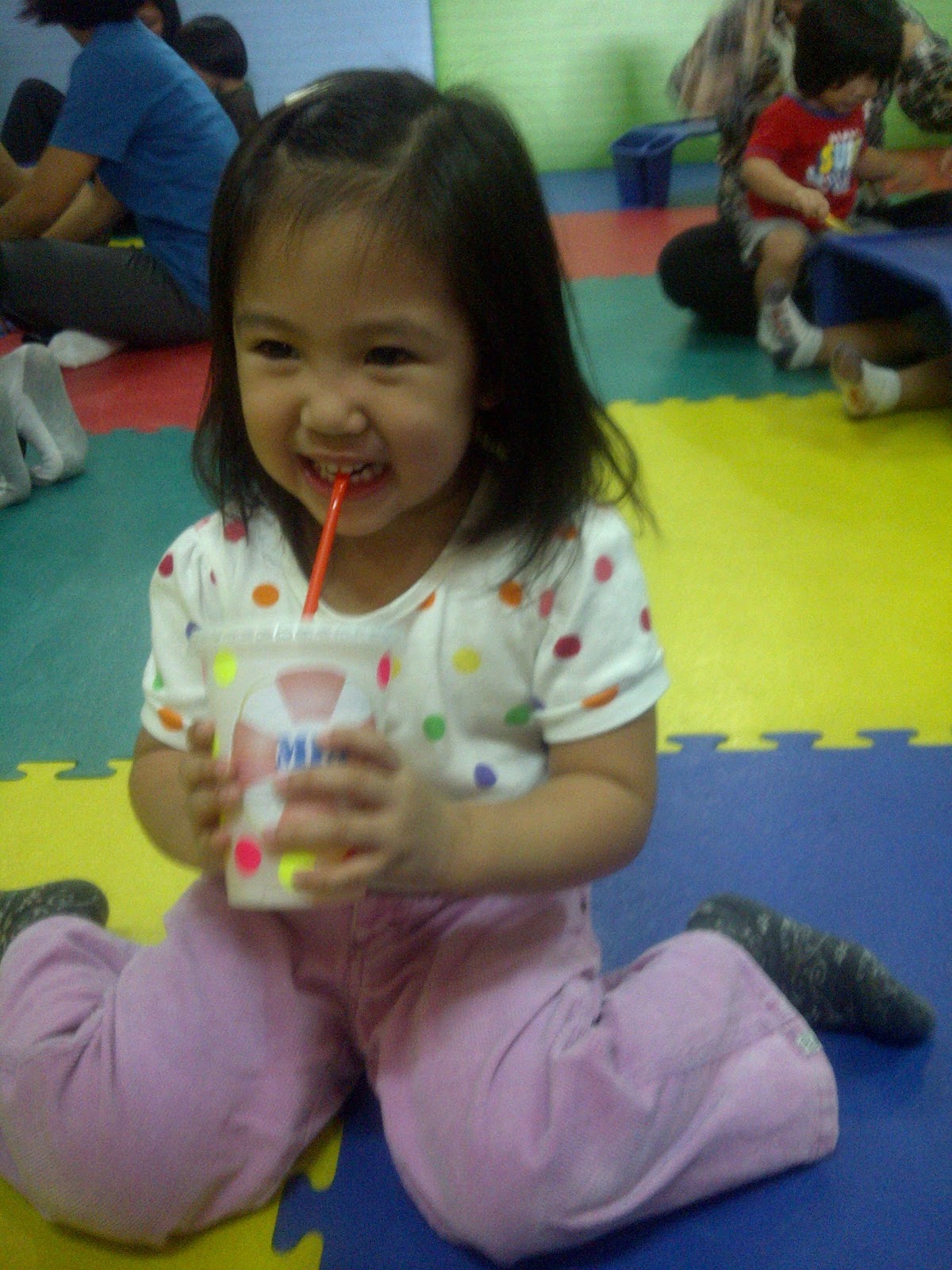 The cups the kids decorated earlier were filled with cold juice drinks to refresh them from all the singing and dancing. Mia loves her cup. I am actually having difficulty disposing of it. She keeps on looking for it; “Where’s my juice cup?”